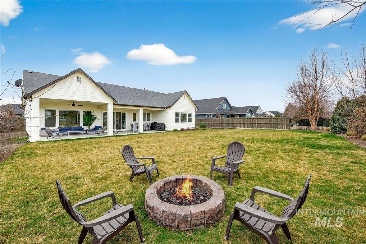 HUGE PRICE REDUCTIOIN for this stunning modern farmhouse, situated in the highly sought-after Homestead community in Eagle. Set on a spacious 0.317-acre lot with an east-facing backyard, the property borders community green space?creating a sense of expanded outdoor living, added privacy, & effortless access to the neighborhood pool just steps away. Inside, soaring ceilings, custom millwork, & hardwood floors flow seamlessly throughout the main living. The open-concept great room is filled with natural light & anchored by a cozy gas fireplace with beautiful built-ins, creating a warm yet sophisticated gathering space. The gourmet kitchen is a true showpiece, featuring custom cabinetry, quartz countertops, a Thermador gas range, Bosch double ovens, a walk-in pantry, & fridge included. Dual sliding glass doors create a seamless indoor-outdoor connection, perfect for entertaining or enjoying al fresco dining on the expansive covered patio. The serene main-level primary suite offers a spa-like retreat with a soaking tub, dual vanities, a floor-to-ceiling tiled walk-in shower, & a spacious walk-in closet with convenient access to the laundry room. Upstairs, a generous bonus room provides flexible space for a media room, home gym, office, or playroom?tailored to fit your lifestyle.