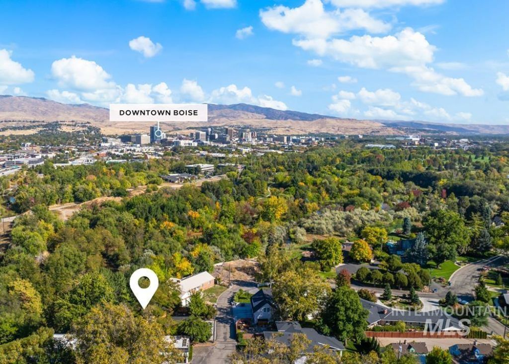 Perched above the city on the Central Rim, this modern marvel captures the mid-century aesthetic while showcasing breathtaking views of rolling foothills, open skies & a cityscape that glows at dusk. Feel a sense of space & serenity, elevated above the treetops. Enjoy fabulous access to parks, Greenbelt, & Boise River just below. Set on a rarely traveled street, the wood-clad exterior & expansive glass reflect a design ethos rooted in simplicity, geometry, & a connection to nature. Inside, soaring wood-lined ceilings angle toward sliding doors, framing the landscape and inviting light to pour in. Warm wood floors, a statement fireplace, linear lighting, & clean architectural lines create a space that feels curated & comfortable. The kitchen continues the aesthetic with sleek cabinetry & dark quartz counters. The main-level primary suite offers privacy, a stylish bath & access to the terrace where a hot tub awaits. A walk-out lower level includes additional bedrooms, laundry, & spacious bonus room. Outdoors, the elevated deck feels suspended above neighboring rooftops, offering desirable privacy, complemented by a barrel sauna, lush lawns & two-car garage. Unparalleled proximity to downtown, the river, & green space, including the nearby Greenbelt & Albertsons Park, this is modern, architecturally significant living at its finest in one of Boises most iconic settings.